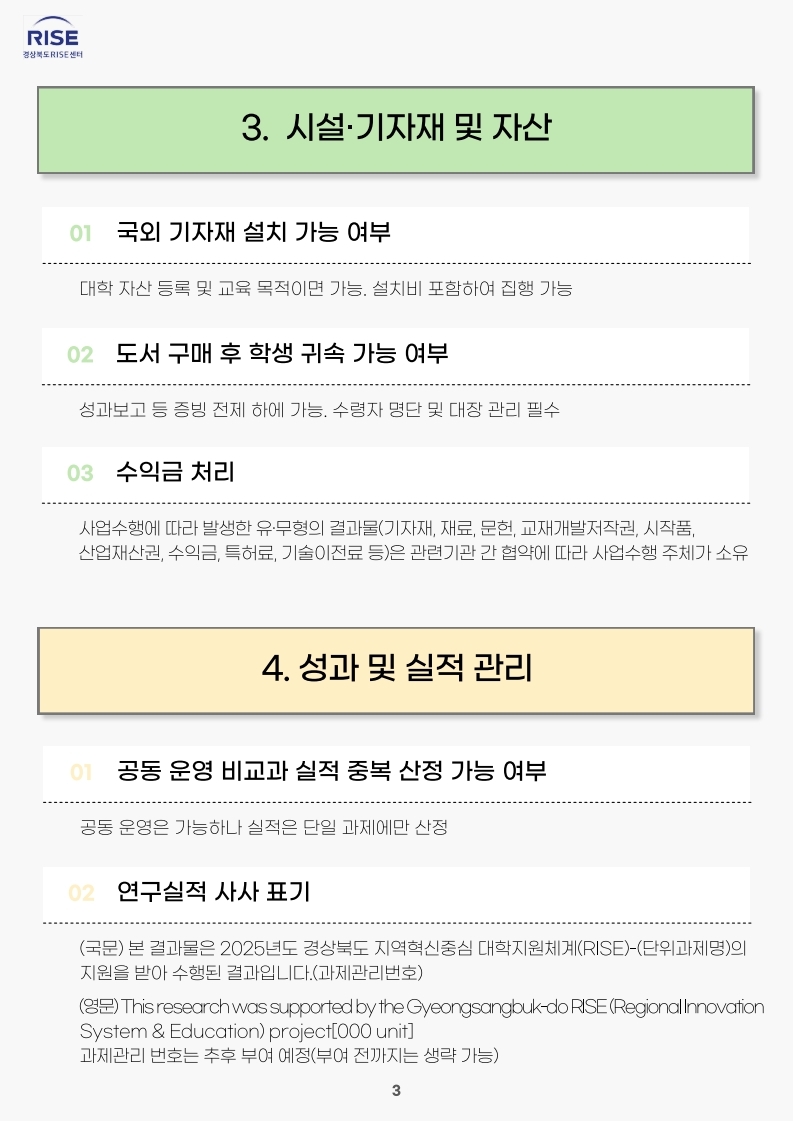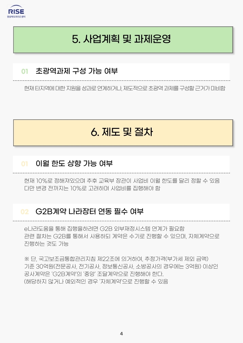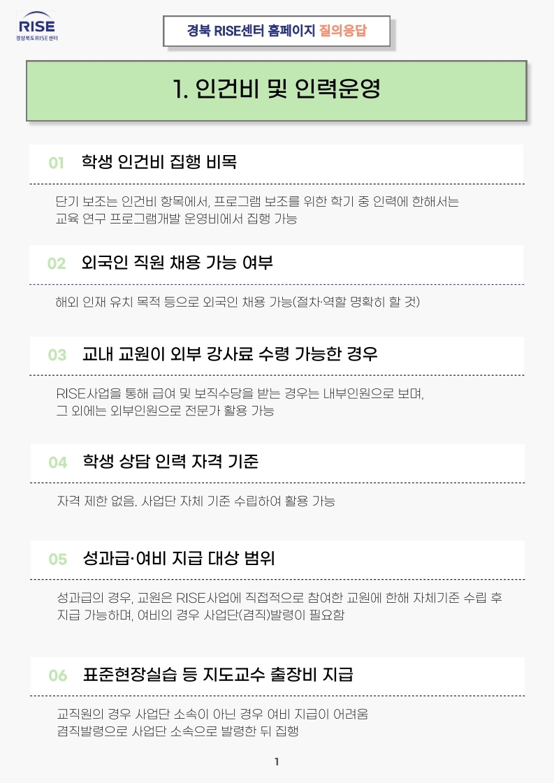 경상북도 RISE센터 주요 질의에 대한 응답 내용입니다.